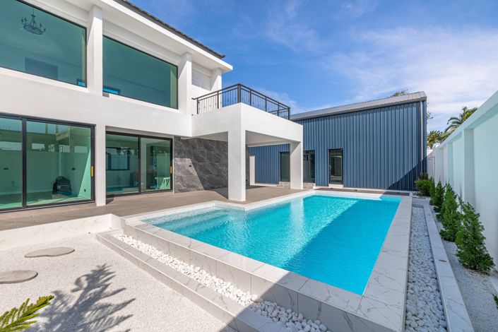 This two-story Nordic-style pool villa near Mabprachan Lake offers a blank canvas for you to design and furnish exactly to your taste
