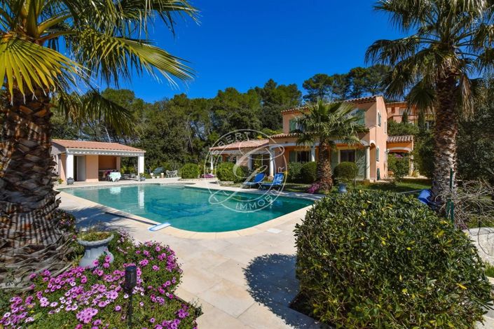 For Sale Flayosc - In the heart of a superb landscaped garden, in a delight of spring colors, very beautiful villa in perfect condition, offering large bright living rooms, large entrance, spacious equipped kitchen, double living room with a wood stove, three bedrooms including a master suite on the ground floor, a bathroom with toilet, separate toilets.