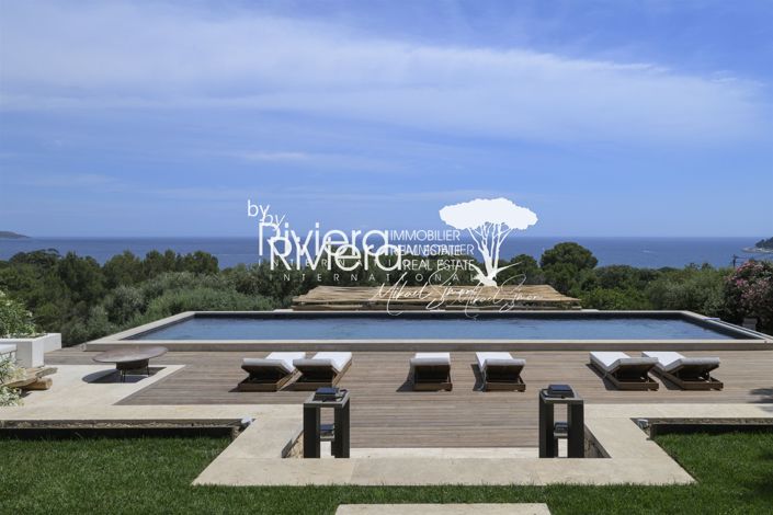 Panoramic Sea View for this Exceptional Property of approximately 370m2 completely renovated with very high-end services and beach on foot... Quiet on 2573m2 of land, it offers a vast living/dining room opening onto the outside, superbly equipped kitchen, 1 very large Master bedroom, 5 bedrooms including 3 en suite - It has 2 additional rooms that can be converted giving free rein to your imagination (Home cinema, games room...).... Its outdoor space consists of a superb 15-meter swimming pool with vast terraces and summer lounge, all facing the sea! Electric gate, Alarm, Carport and many other services complete this magnificent property!