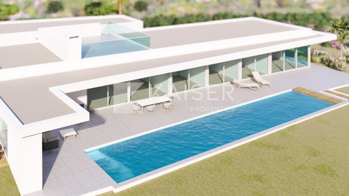 Located in the prestigious area near Lagos, in close proximity to the renowned Palmares Golf Course, this exceptional villa, under construction, combines contemporary architecture with luxurious comfort in a privileged residential setting. Set on a generous 3,015 m² plot, the property offers privacy and stunning views of the sea and the Monchique mountains. The exterior areas are designed for both relaxation and entertainment, featuring a beautifully landscaped garden, spacious covered and uncovered terraces, a 20-metre saltwater swimming pool with automatic cover, and a dedicated barbecue area. Additional highlights include a garage for up to four vehicles, a private wellness area with sauna and spa, and a separate guest apartment with its own entrance.