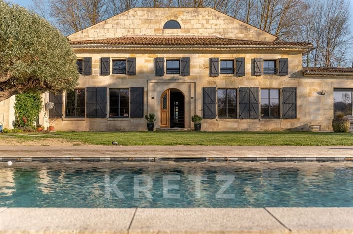 Located just 3 km from Libourne and 30 minutes from Bordeaux, in the heart of the Fronsadais area, this character estate extends over almost 7.8 hectares and reveals an elegant stone manor house, arranged over two floors and entirely renovated with high-quality materials, offering approximately 605 sqm of living space. Accessed via a long private driveway, the property also benefits from enclosed areas suitable for horses and other animals, with existing stables already in place. From the moment you arrive, the estate impresses with its spectacular volumes and the rare balance it achieves between modern comfort and the timeless charm of stone.
