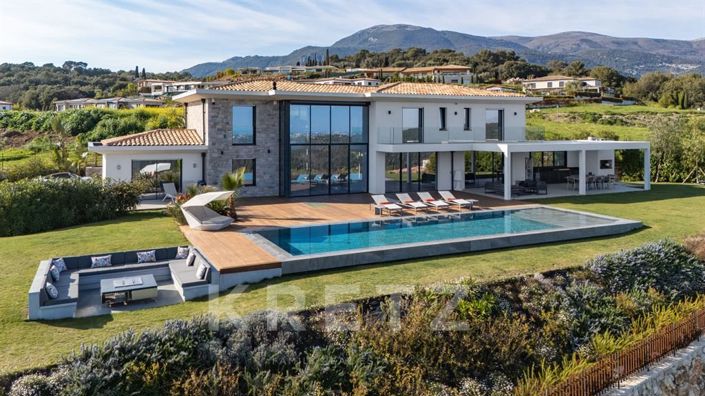Contemporary 640 m² villa located in Roquefort-les-Pins, in a private, highly residential and quiet domain. Just 25 minutes from Nice Airport and 10 minutes from the village of Saint-Paul-de-Vence, this property offers breathtaking sea and hill views. It features spacious living areas with spectacular volumes, open to the terrace and the pool, 4 ensuite bedrooms with bathrooms and a master bedroom with bathroom and dressing room. Outside, a 14x4.5 m mirror pool, a fire pit, a bioclimatic pergola, and an outdoor kitchen. To complete the comfort of this recently built villa, a gym, a billiard room, an independent apartment, and remote-controlled home automation. A large garage and numerous parking spaces allow for private hosting.