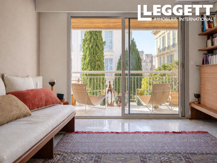 The living room opens onto a south-facing terrace of 6m², perfect for enjoying the Mediterranean sunshine. The fully equipped kitchen is ready for immediate use, while both bedrooms feature built-in wardrobes providing ample storage. The bathroom includes both a bath and shower, complemented by a separate WC. Double-glazed windows with security shutters ensure a quiet and secure environment. Located in a well-maintained condominium on a quiet cul-de-sac, residents also benefit from an on-site concierge, a private garage, and a secure cellar for additional storage.