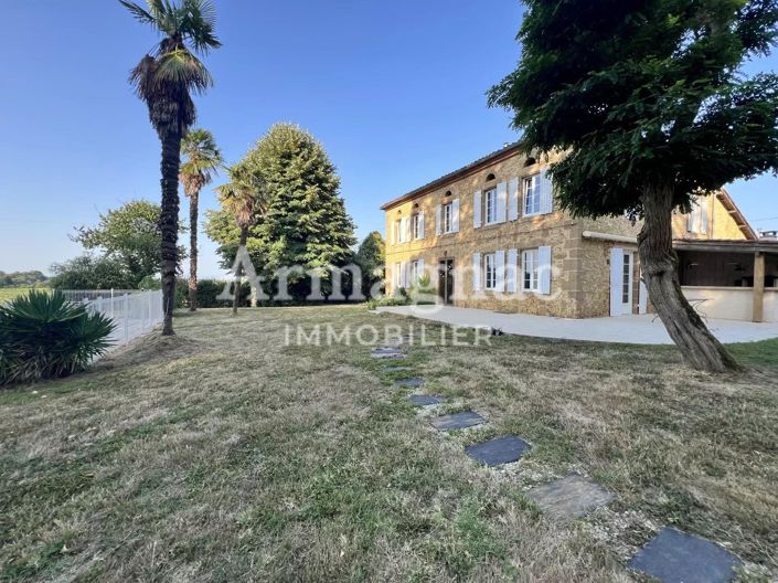 Armagnac-Real Estate offers you, in the heart of Bas-Armagnac, just 15 minutes from Eauze and 10 minutes from Nogaro, this splendid bourgeois house full of charm, which has preserved magnificent old elements that confer its elegance and authenticity. On the ground floor, you will be seduced by the spacious hall, its original cement tiles, its efficient wood stove, and its beautiful period staircase. You will discover a large welcoming entrance with an efficient wood stove, a fully equipped kitchen with dining space, a warm living room facing South and East, a dining room, a laundry room, toilets, and a comfortable master suite with a shower room and dressing room. Upstairs, a vast landing leads to three large bright bedrooms and a complete bathroom with shower, bathtub, and toilet. Outside, the setting is exceptional: a panoramic view facing South over the valleys of Gascony, and in the distance, the Pyrenees mountains. The vineyards, set far enough away, offer a soothing landscape without any nuisance. To fully enjoy the beautiful days, you will have a pleasant summer kitchen, perfect for family or friends' meals, just steps away from the pool. An outbuilding of nearly 200 m² completes the whole. Currently used as a garage and storage space, it can accommodate various projects: workshop, gîte, extension, etc. The garden, shaded by magnificent centenary oaks, invites calm and relaxation, in a natural and preserved environment. For any further information, please contact Charlie-Brossard.