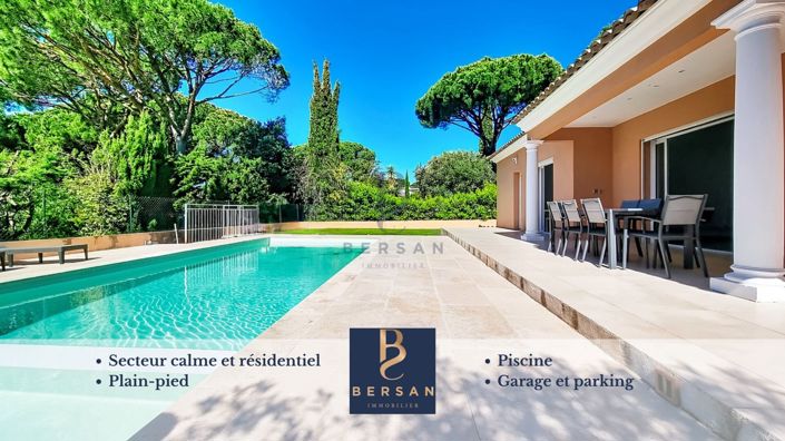 Your Bersan Immobilier agency offers you this beautiful villa nestled in the heart of a peaceful residential neighborhood, entirely on one level, which immediately appeals with its serene atmosphere and privileged setting.