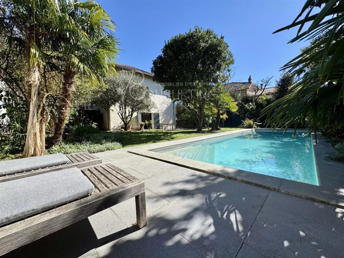 This superb house has a living area of 194m² and about 100m² of convertible attics, a very beautiful landscaped garden with a pool, two parking spaces, a bike storage room, garden shed.