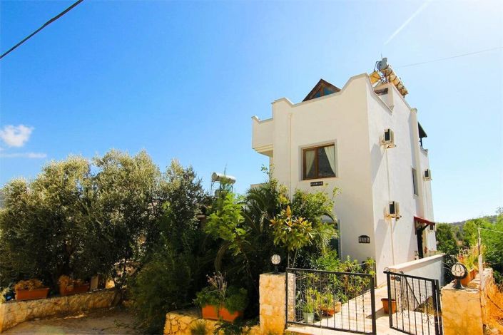 The duplex flat includes two bedrooms, one on the entrance floor and the other on the upper floor, along with a total of 2 bathrooms. The flat has sea views and will be delivered furnished. It is located in a 3-storey boutique building in Kas. The building includes a shared pool available for the use of only 3 flats. Overall, the building is well-maintained and does not require additional expenses or renovation.