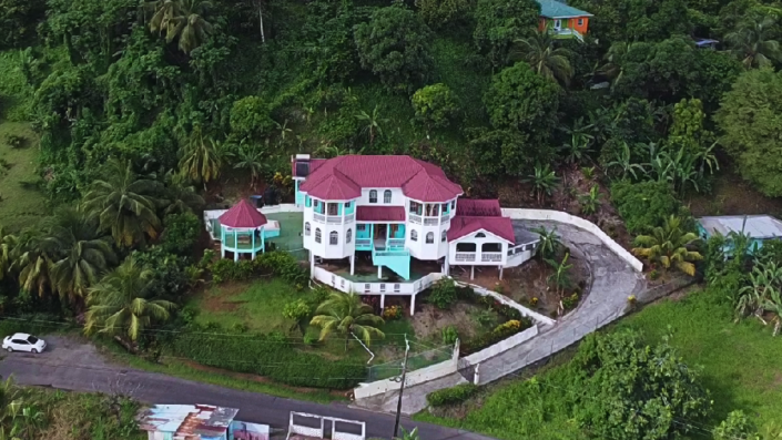 Set on approximately 26,960 sq. ft. of land, the property enjoys cooling mountain breezes and a serene atmosphere, enhanced by mature, well maintained gardens and an abundance of fruit trees. The setting feels private and tranquil, while still offering scenic views overlooking the Babonneau Church and nearby surroundings.