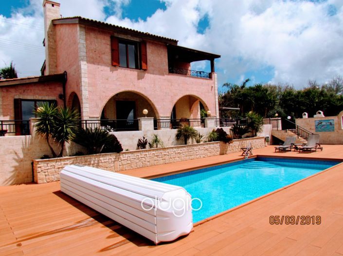 This Super Luxury Villa is set in a fantastic location on hilltop area taking in breathtaking panoramic views of Paphos district towards the sea & coastline from the airport to Coral Bay, plus it only a few mins drive to the 18 hole championship Golf Course of Minthis Hills. The property is elevated from summer humidity, offering the benefits of a healthy climate and refreshing mountain breezes. Every corner of this villa has been finished to the highest standard during its recent comprehensive refit in 2017.The property includes some furniture, fittings and fixtures and has Title Deeds.This property also has potential for another house to be built on the plot.