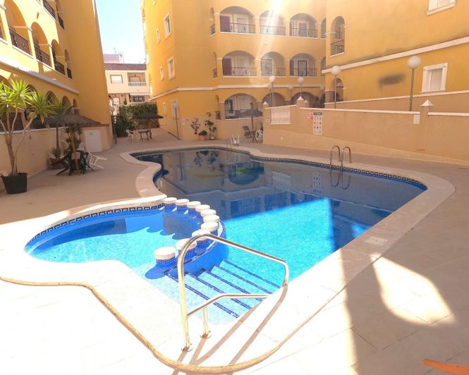 A spacious first-floor apartment located in the sought-after Residencial Fontana 1, in the charming village of Algorfa.