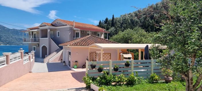 For sale: A luxurious fully furnished and equipped villa in Afionas, Corfu, with a total area of 271.78 sq.m., spread across the ground floor and first floor. The property is set on a 1,327 sq.m. plot, surrounded by a lush garden, and features a private 32 sq.m. swimming pool, a covered BBQ area, a 46 sq.m. garage with storage space, and 10 parking spaces.
