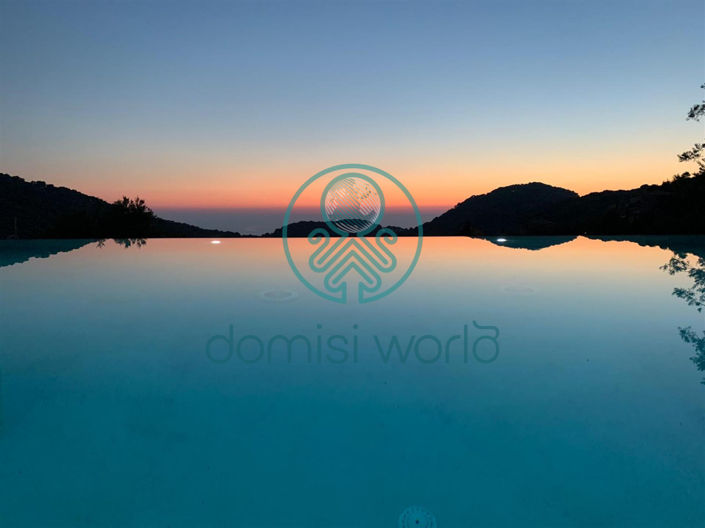 The outdoor area is equally impressive, centered around a sea-facing infinity pool. Covered terraces beside the pool create the perfect setting for outdoor dining and relaxation, while four balconies offer additional outdoor space and views.