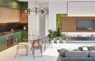 Modern apartments with private terraces and top-tier facilities, including pools...